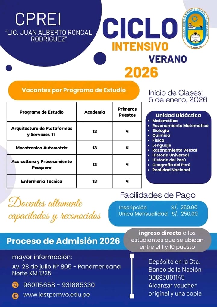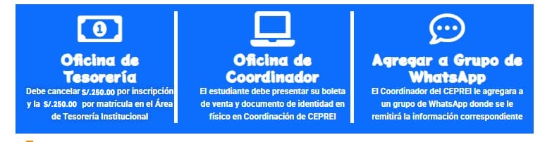 - Pago de Matrícula: S/. 250.00 (Cancelado en Tesorería).