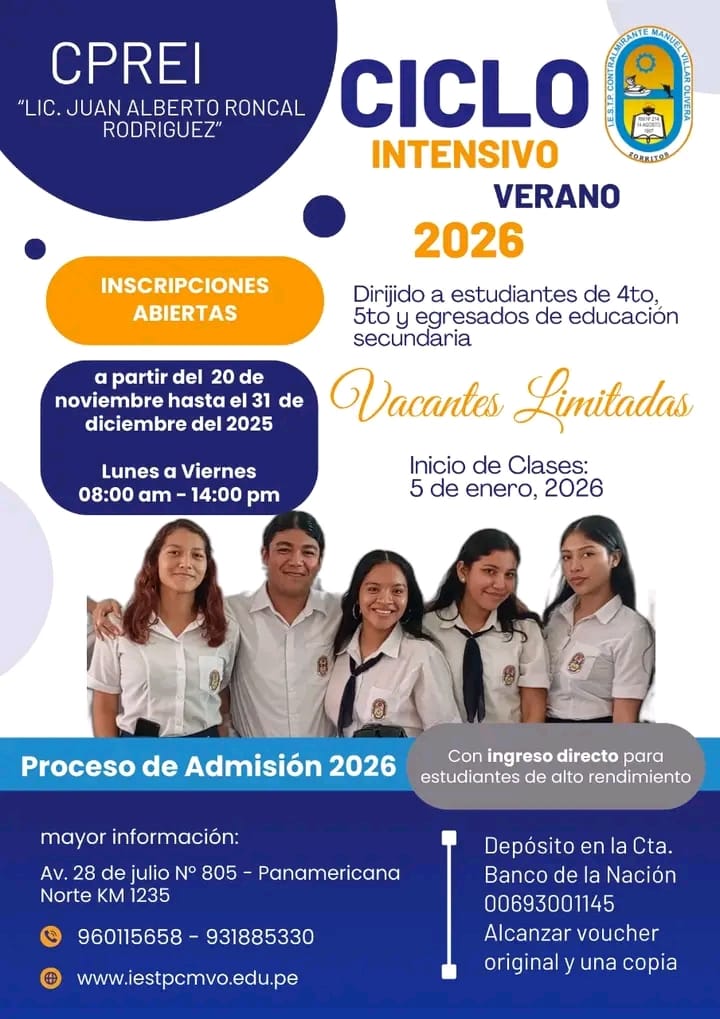 Debe seguir los pasos para poder inscribirse correctamente a nuestra academia de preparación pre instituto del IESTP «Contralmirante Manuel Villar Olivera». Para consulta comunícate al Cel. 921747542.